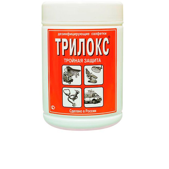 Готовые к применению влажные дезинфицирующие салфетки из белого нетканого материала, равномерно пропитанные дезинфицирующим раствором ТРИЛОКС с минимальным эффективным содержанием спирта для быстрой дезинфекции небольших по площади поверхностей и оборудования.